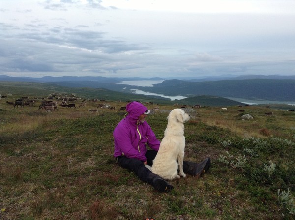 Upp för dagens andra stigning brantare än den första vid Saltoloukta. Väl uppe så ångade vi på ända till backen ner mot Aktse började. Kvällspasset är helt klart vår styrka. Vi ville inte ner i björkslyn utan stannade på höjden och slog upp tältet. Vi hade sett gott om ren på fjället och när vi höll på att förbereda oss att krypa in i tältet kom en stor renhjord i sakta mak och passerade tältet på bara nått tiotal meters avstånd. Man kan lugnt påstå att Milton var småsugen på att dansa med de fyrbenta vännerna så vi fick hålla honom i nackskinnet.