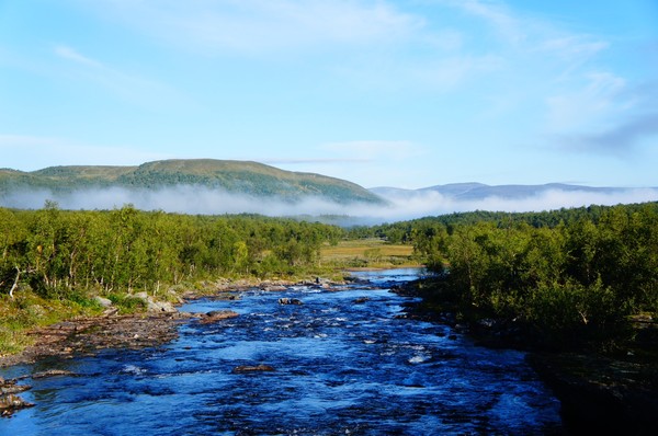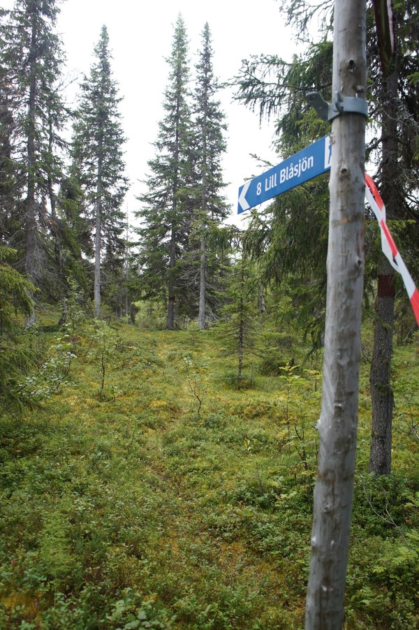 Tidig morgon och skjuts upp till Ankarede. En lång dag med tanke på att vi bestämt oss för att gå ända ner till Gäddede men med tanke på hur våra dagsetapper sett ut på sista tiden och våra, nu inför etappmålet, lätta ryggsäckar var det inte, bortsett från den förbannade hälsenan, alltför skrämmande. Raskt iväg in på den led som följer östra sidan på Stora Blåsjön ner till Tangen. Regnet hade fortsatt och några som kom gående söderifrån igår hade sagt att det var blött så vi gick med kängor första biten.