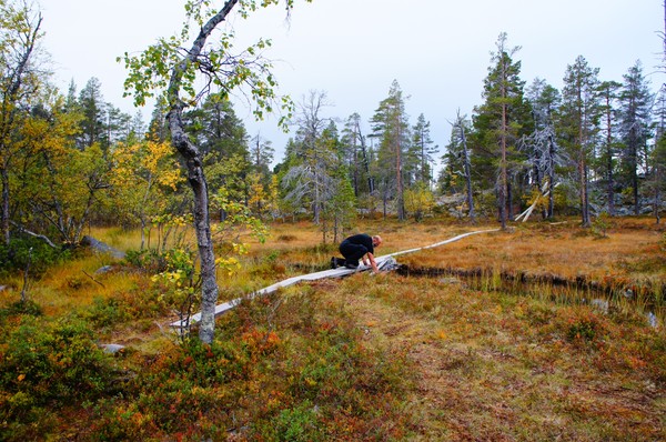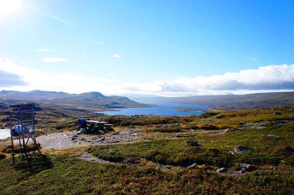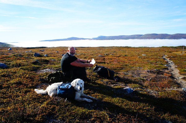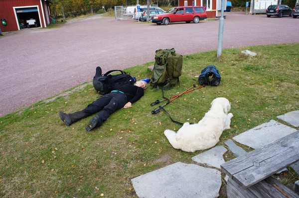 Vi kom iväg vid åtta och det visade sig att det var närmare och lättare att gå till vindskyddet där vi först tänkt campa än vi trott. Tror ändå det var rätt beslut att ta sista natten i en varm stuga så slitna som vi var igår kväll.