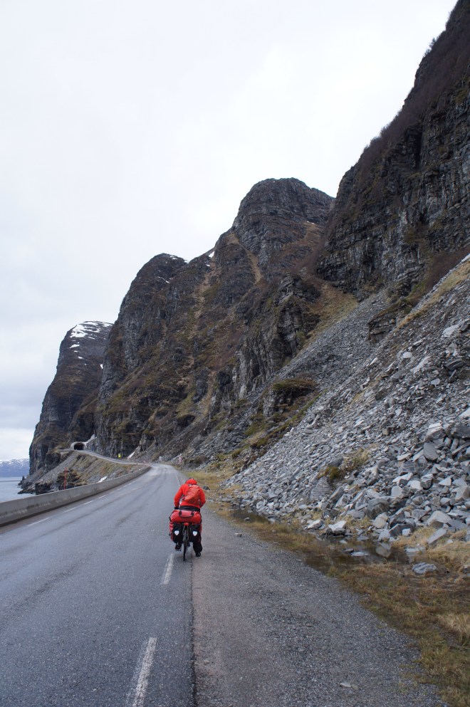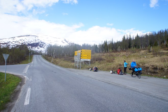 Två händelserika dagar har passerat.Först cyklade vi från Arctic camping mot Storslett. För att komma dit var vi tvungna att passera ett mindre fjäll och ett väldigt högt och brant fjäll.