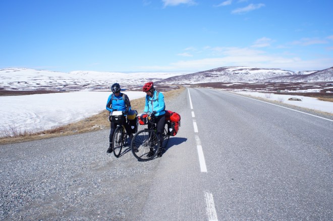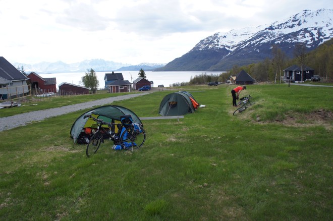 På det viset sparar vi några mils cykling ut från Tromsö och kan förhoppningsvis ta det lite lugnare ner över Lofoten som har varit ett av våra gemensamma mål. Där vill vi inte hasta för att plocka mil.