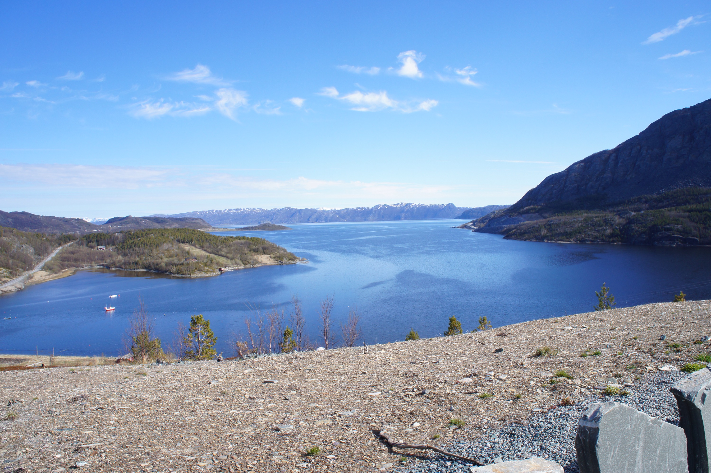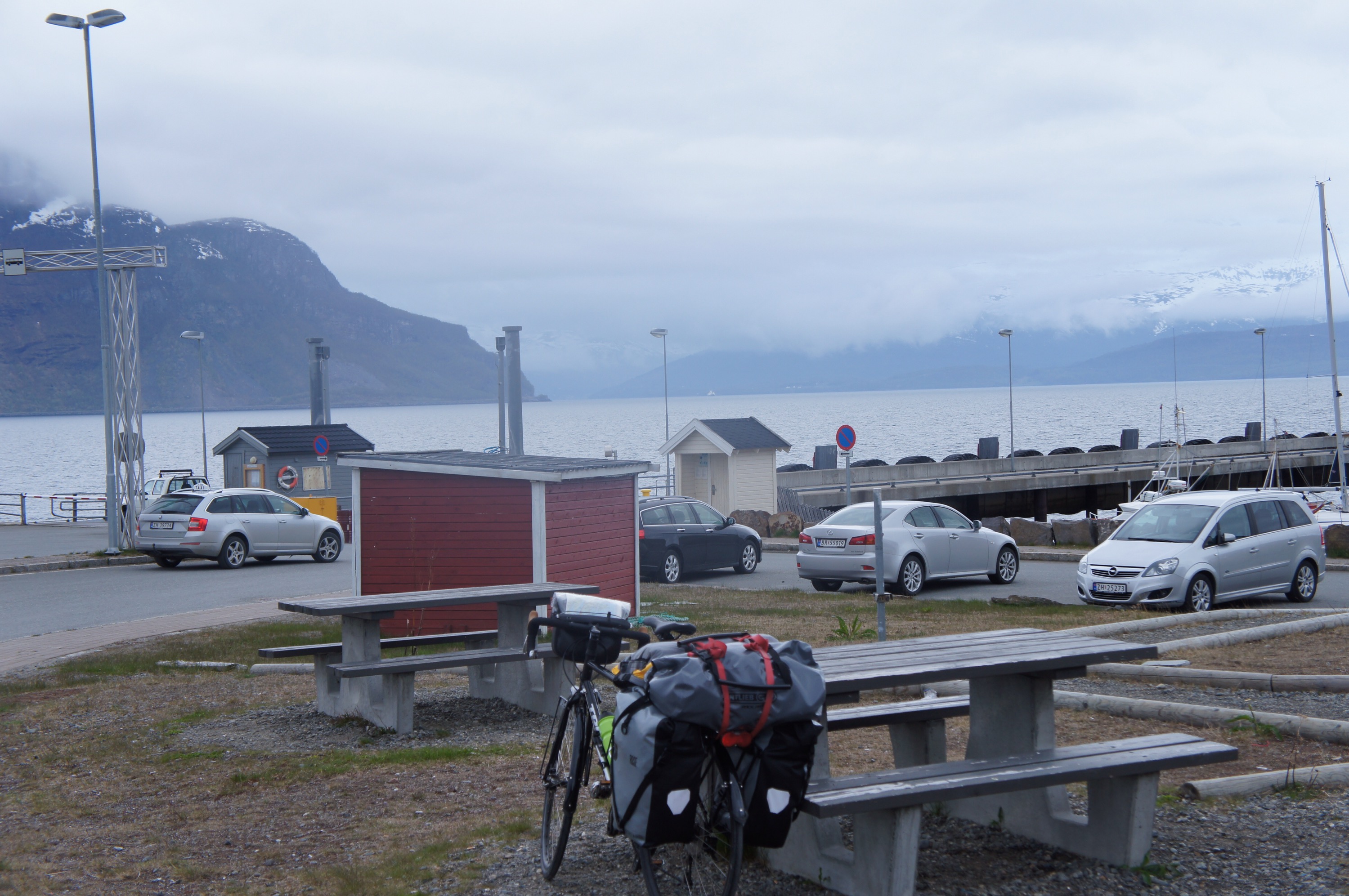 Snabbt två mil till nästa färja och sen vidare mot dagens mål. Kylan gör tyvärr att vi slarvar med pauser och mat.