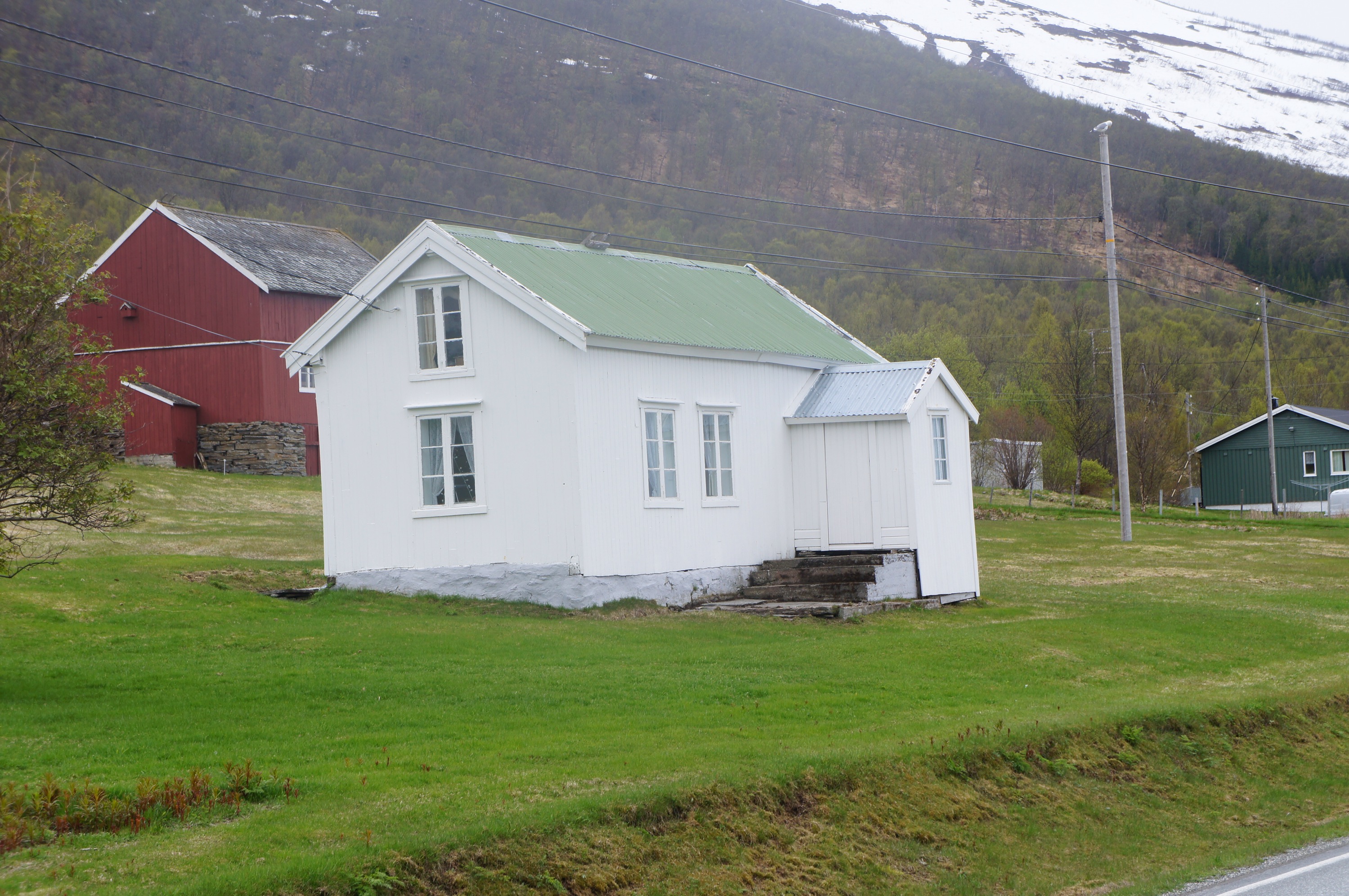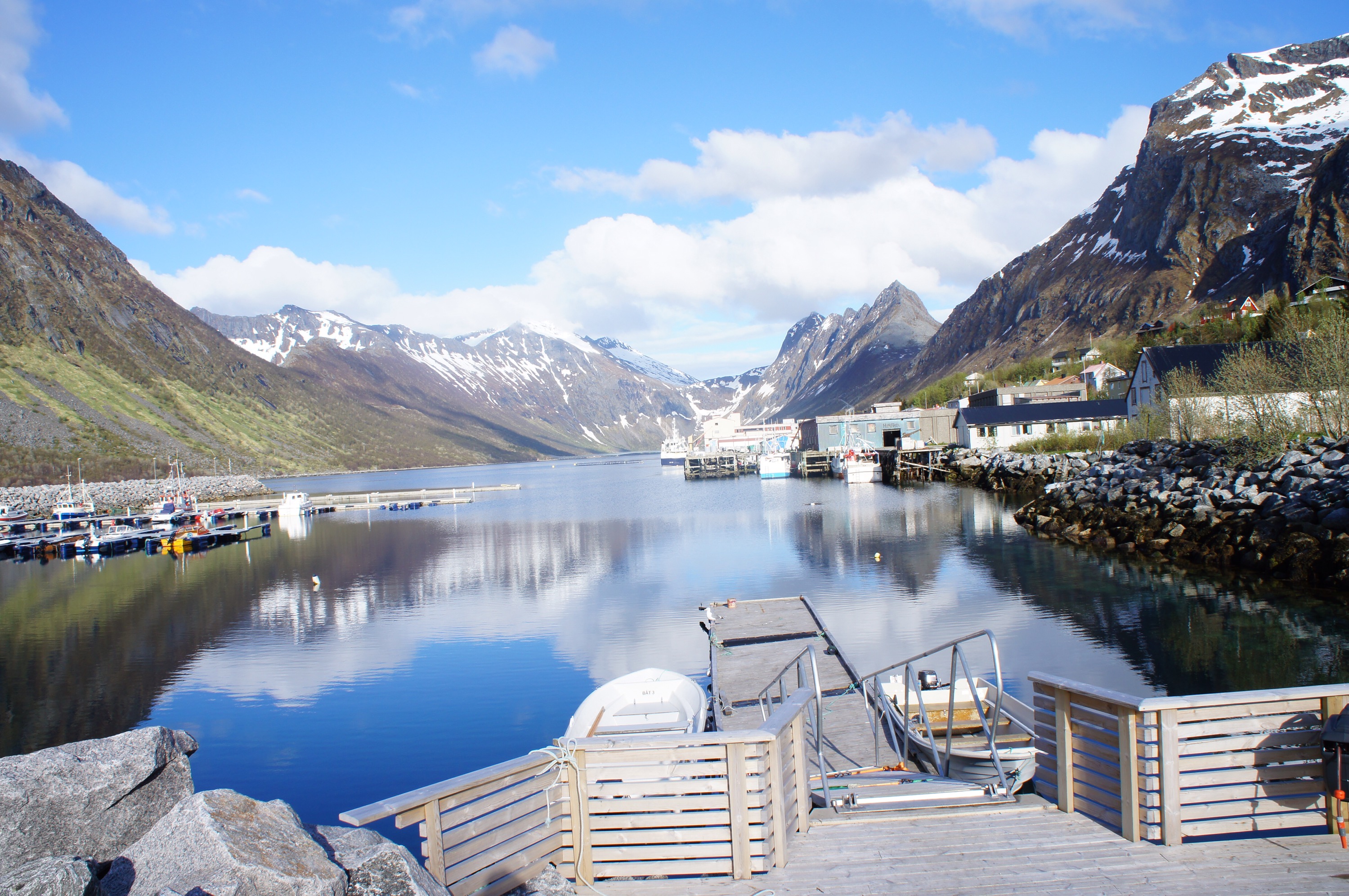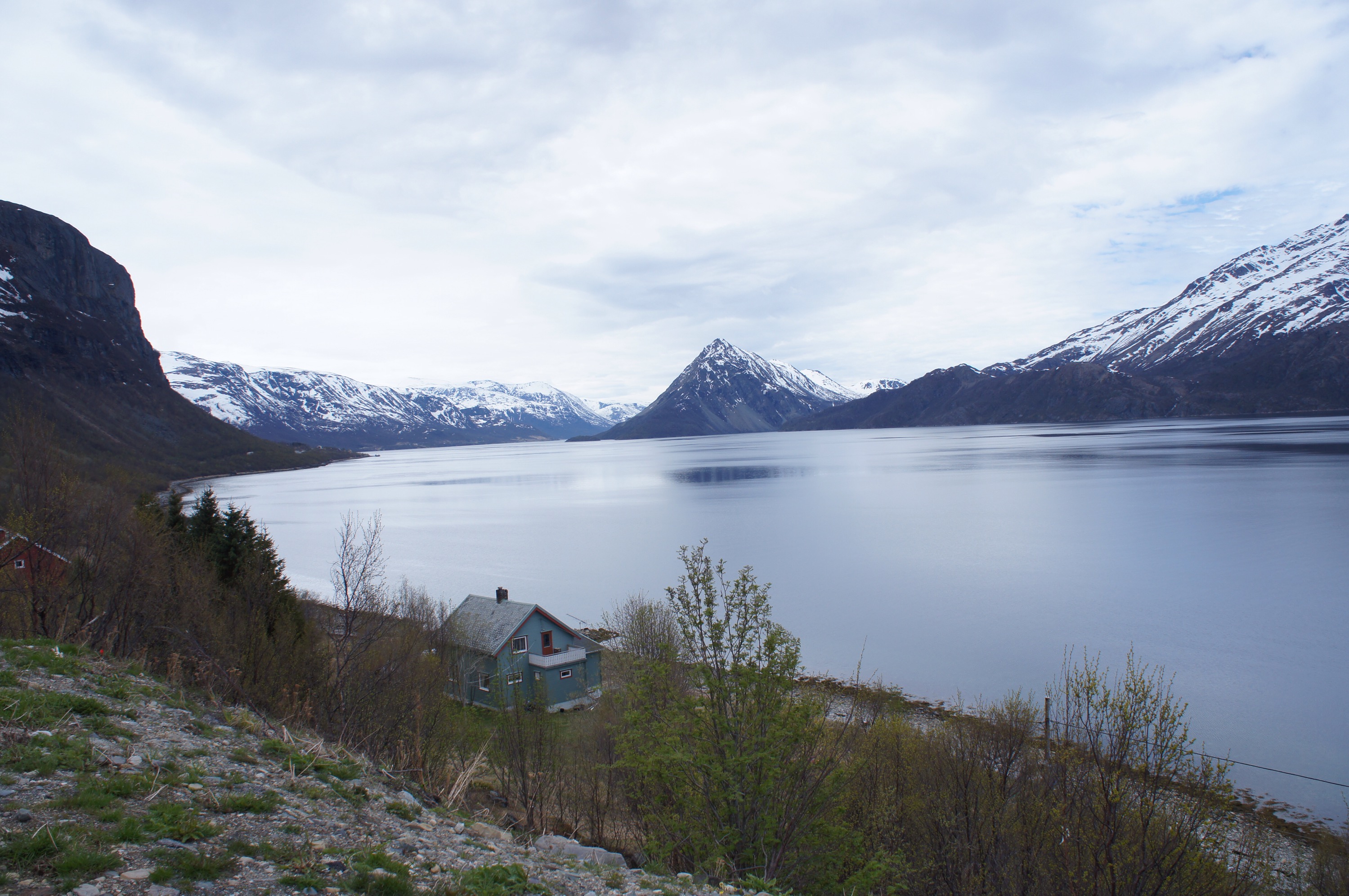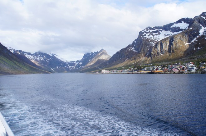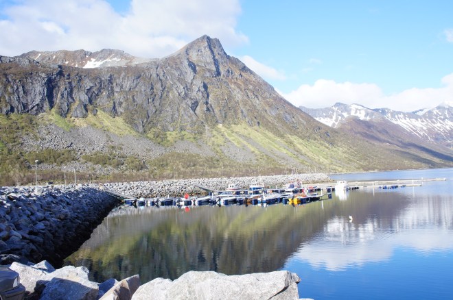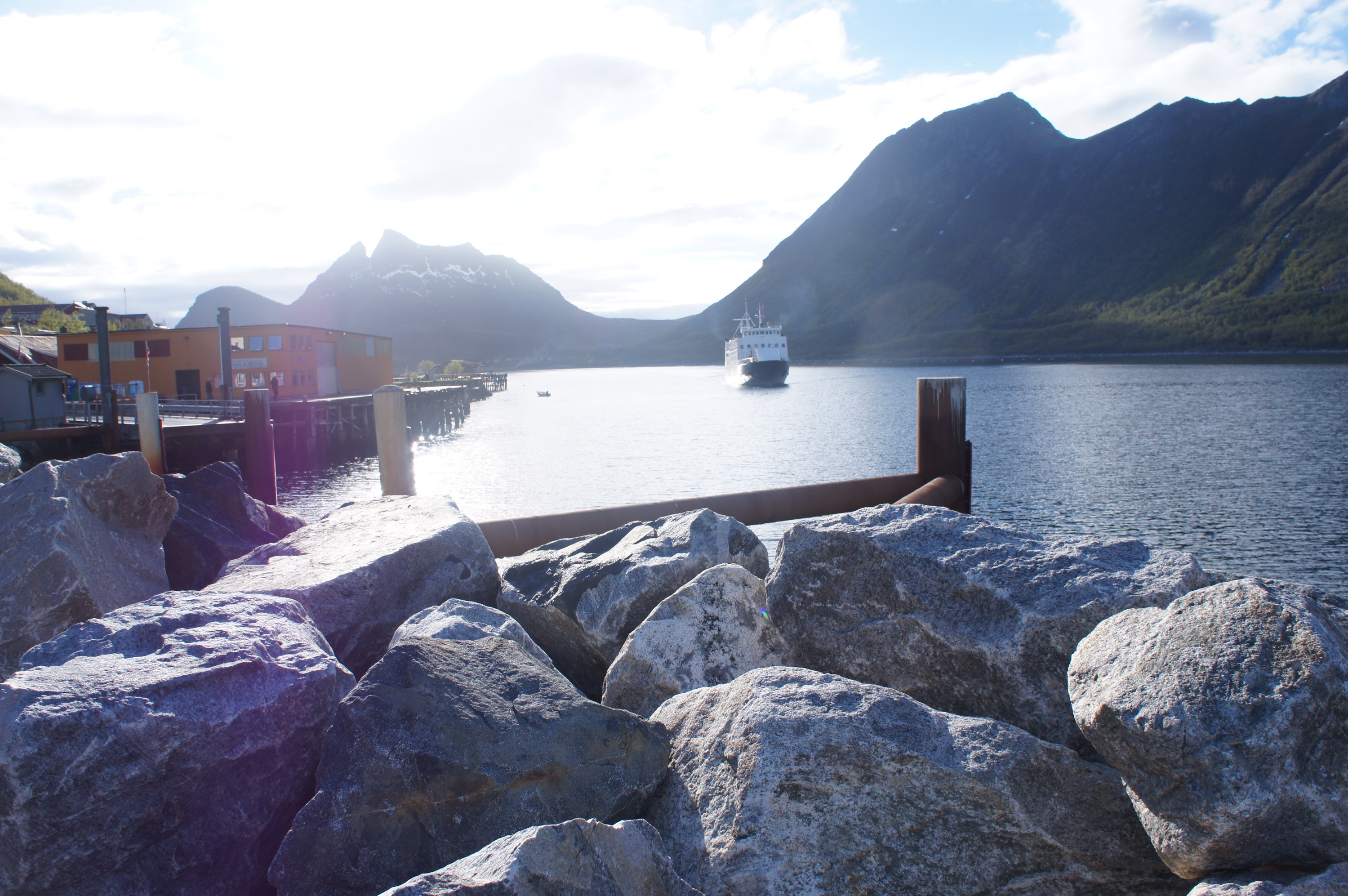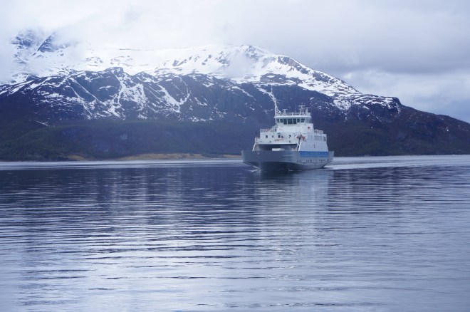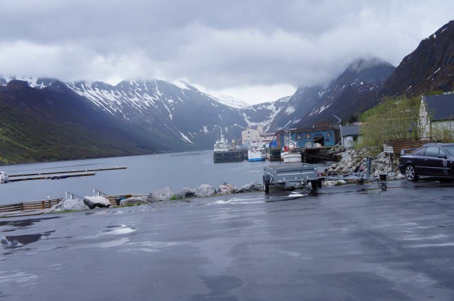 Efter de fyra milen ner till färjan mellan Olderdalen och Lyngseidet var vi rejält kalla. Vi bestämde oss för att ta båten över och hitta boende på andra sidan.