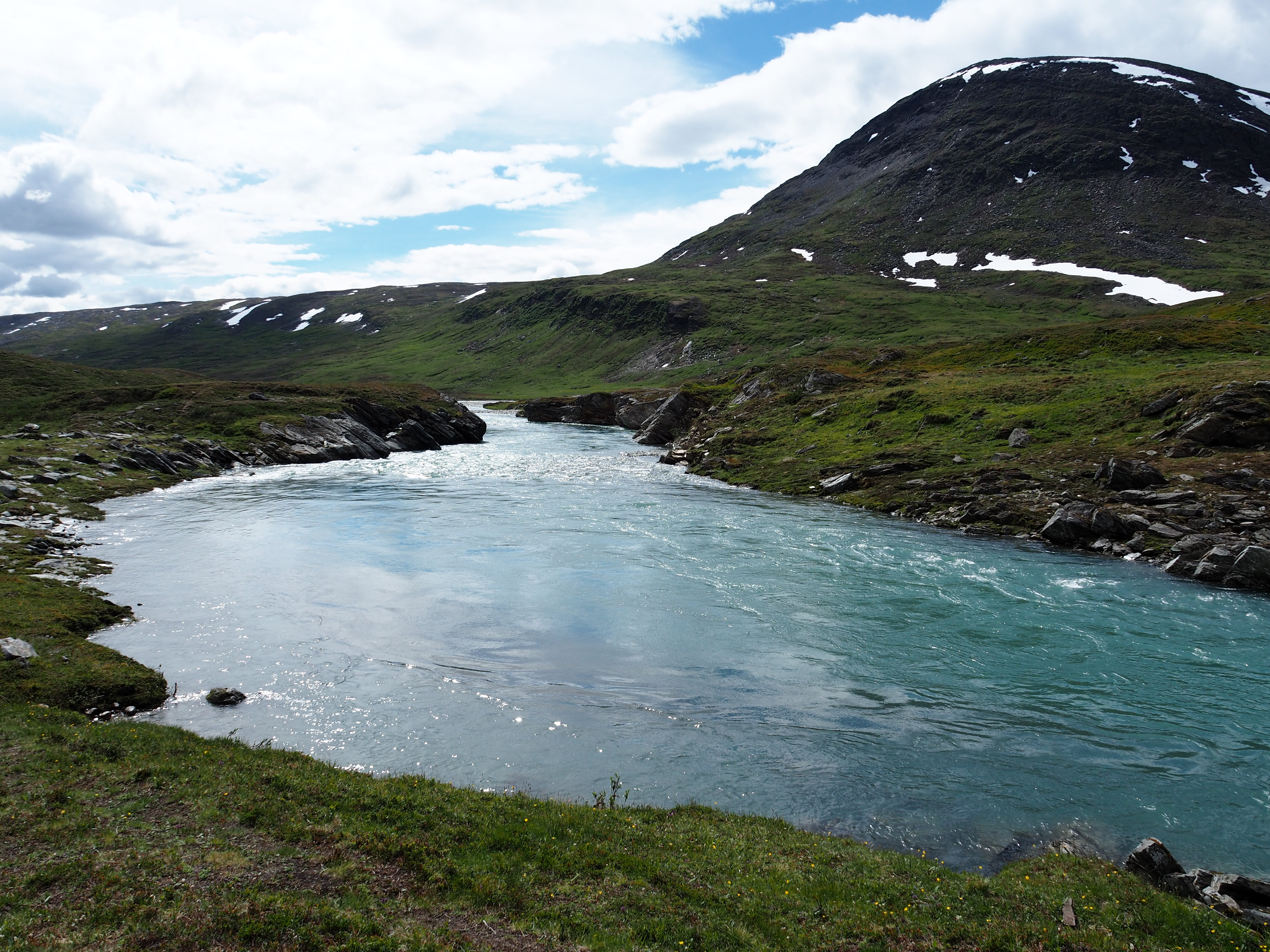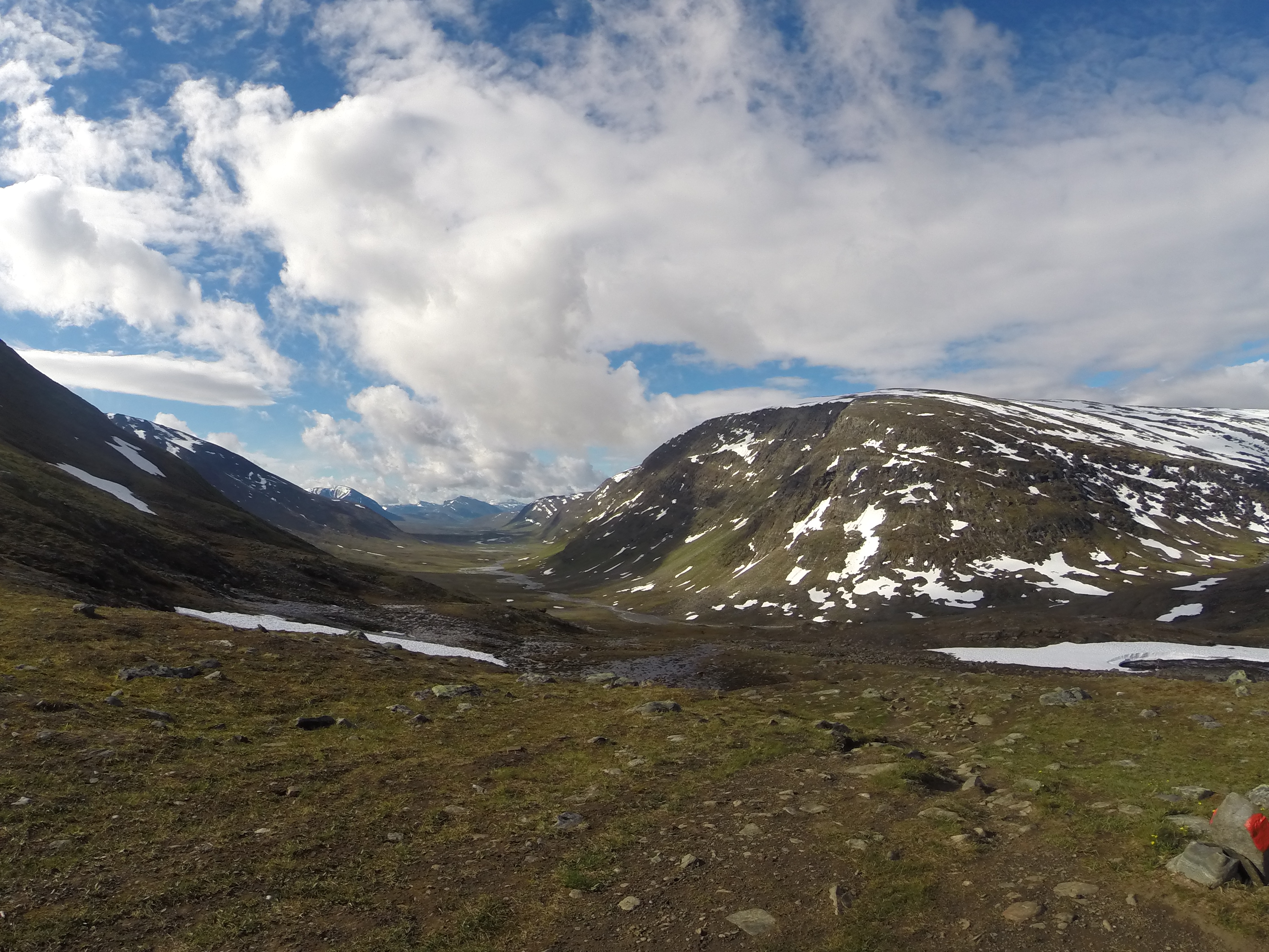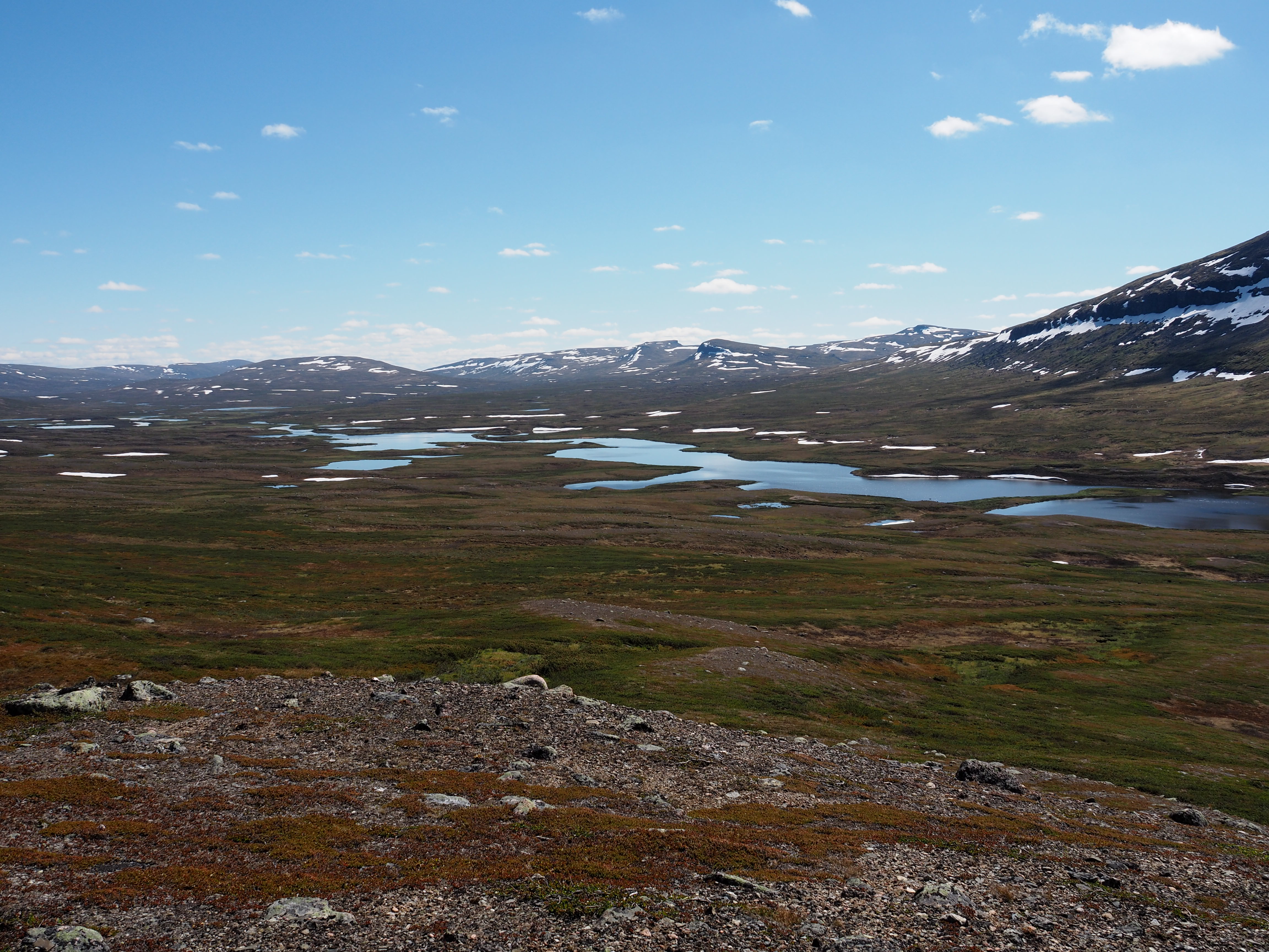 Att vi gått med lätt packning och en hel del längs väg har gjort att vi inte behövt vara lika fokuserade som vanligt på vägval och att sätta fötterna på rätt ställe. Vädret har också, hör och häpna, bidragit till en mer bekymmersfri tillvaro med flera dagar på rad med vackert och varmt väder. På slutet kom molnen tillbaks och även någon regnskur men det är helt klart den bästa veckan så långt.