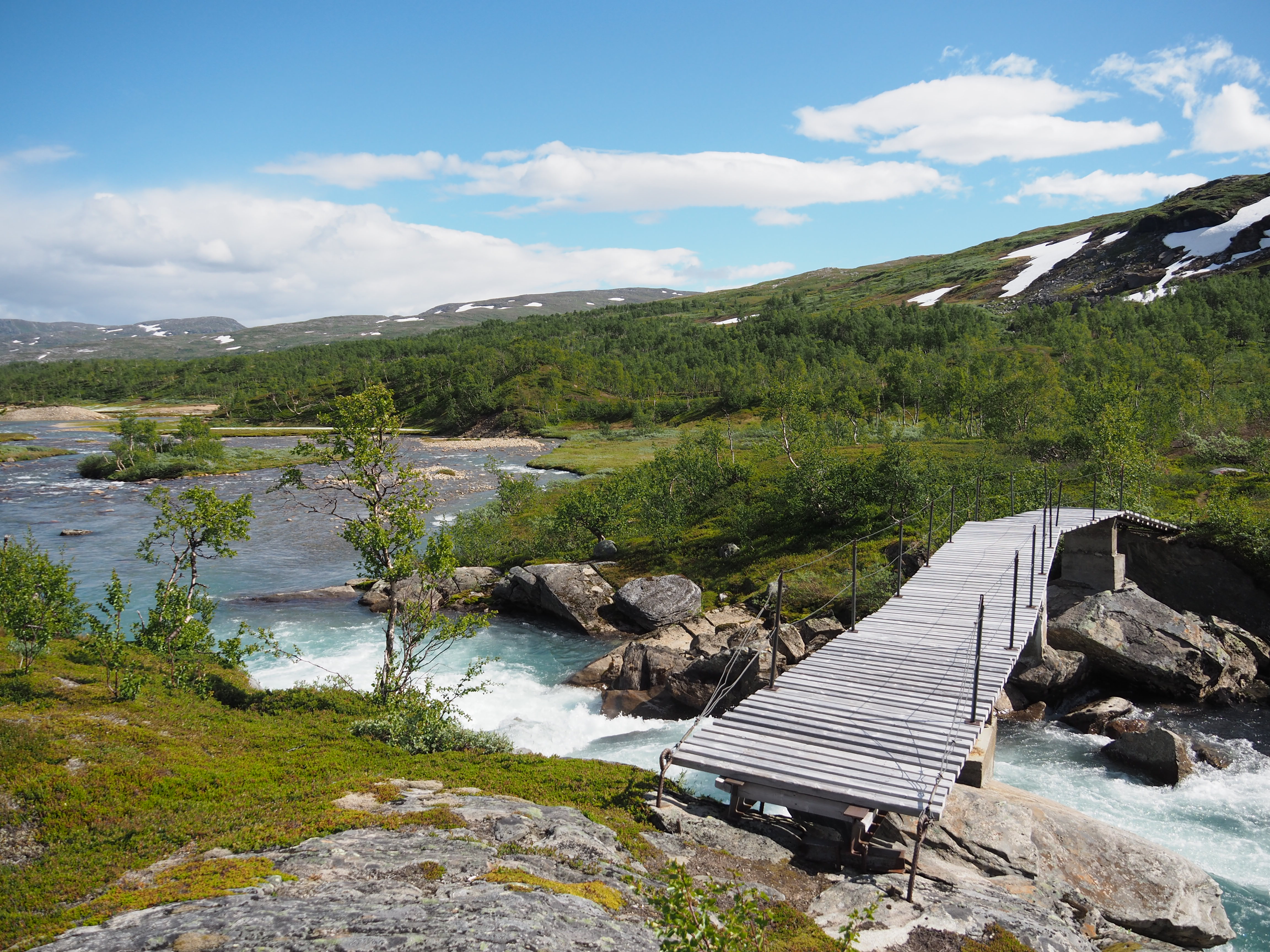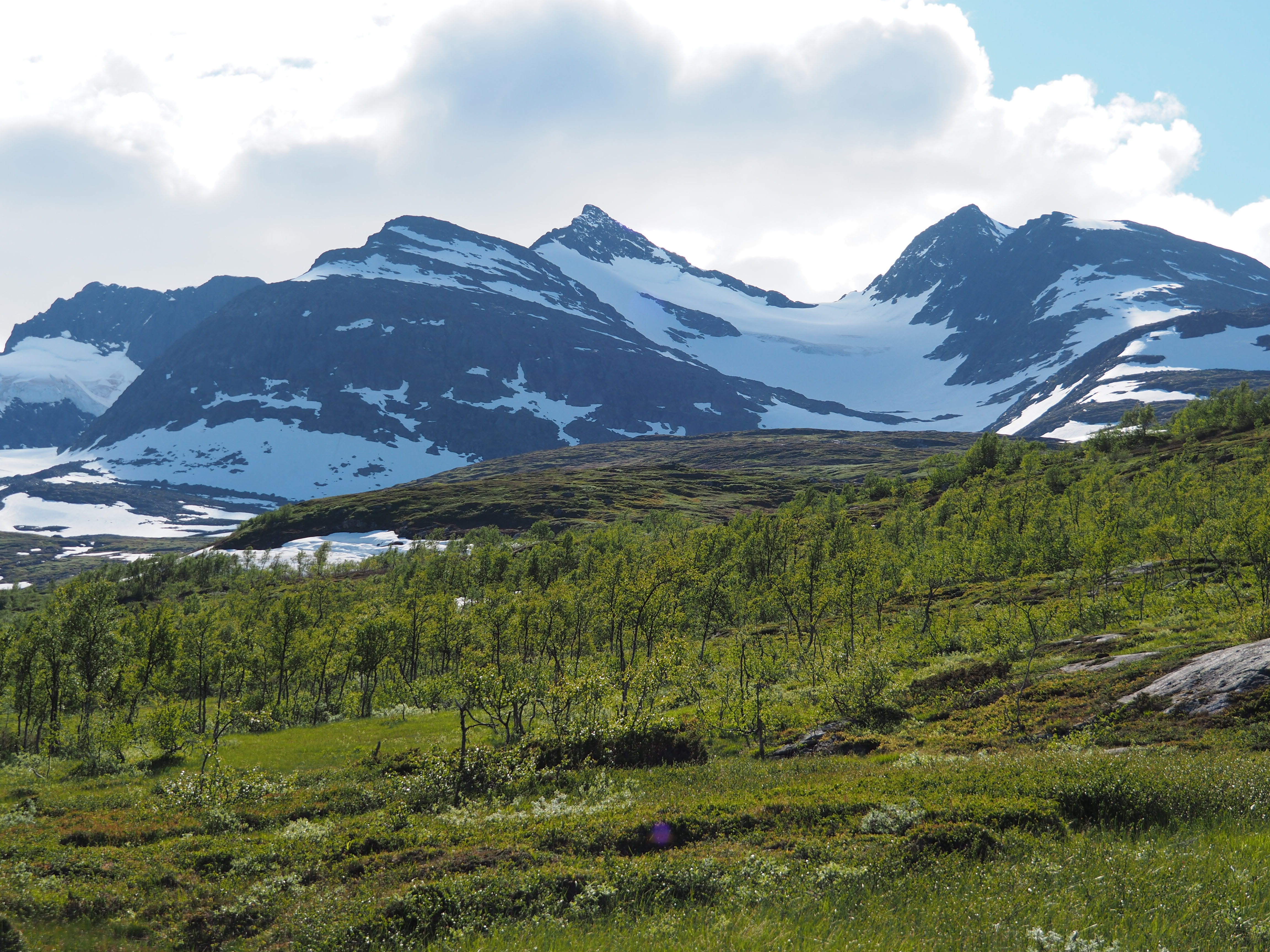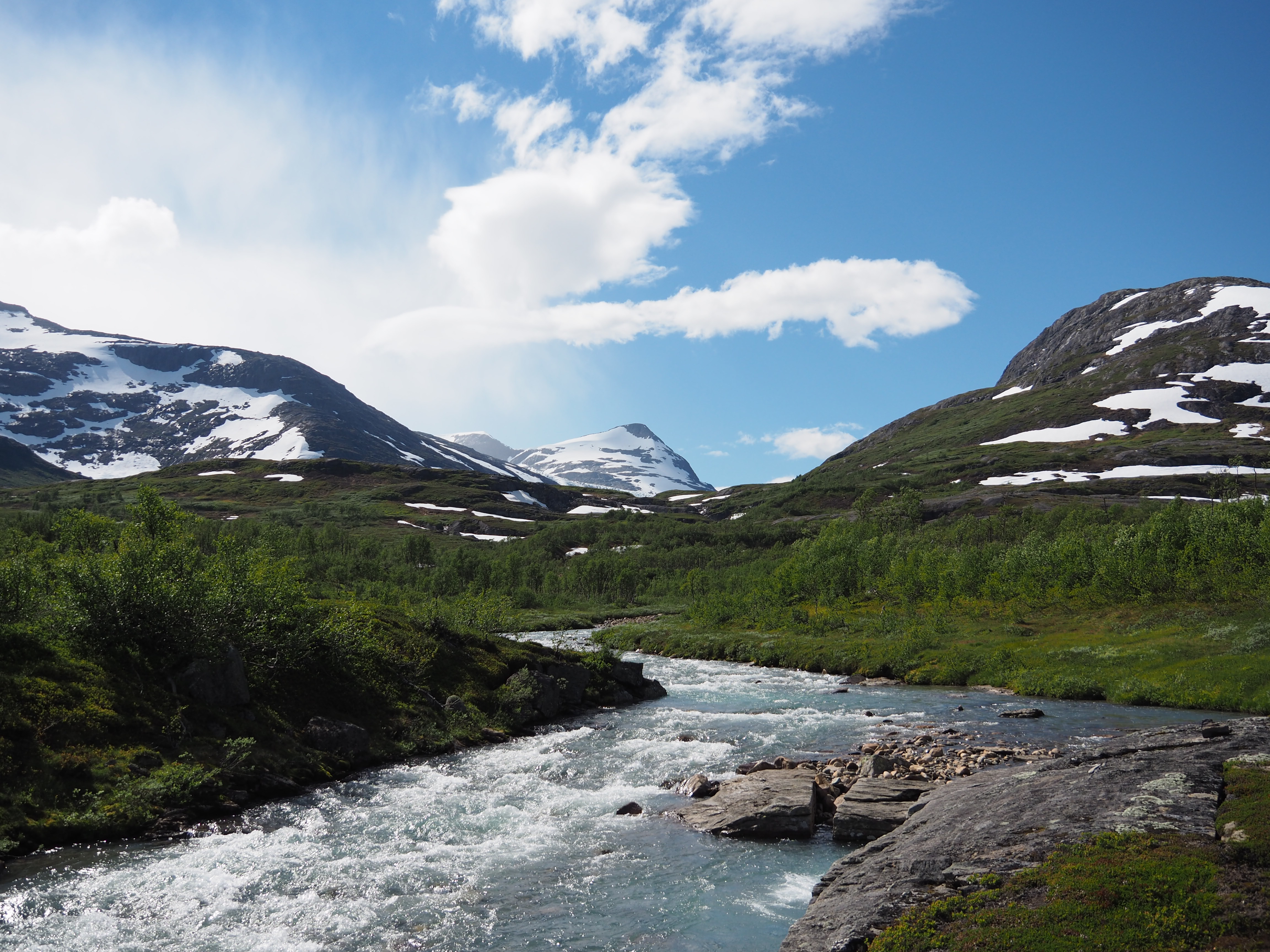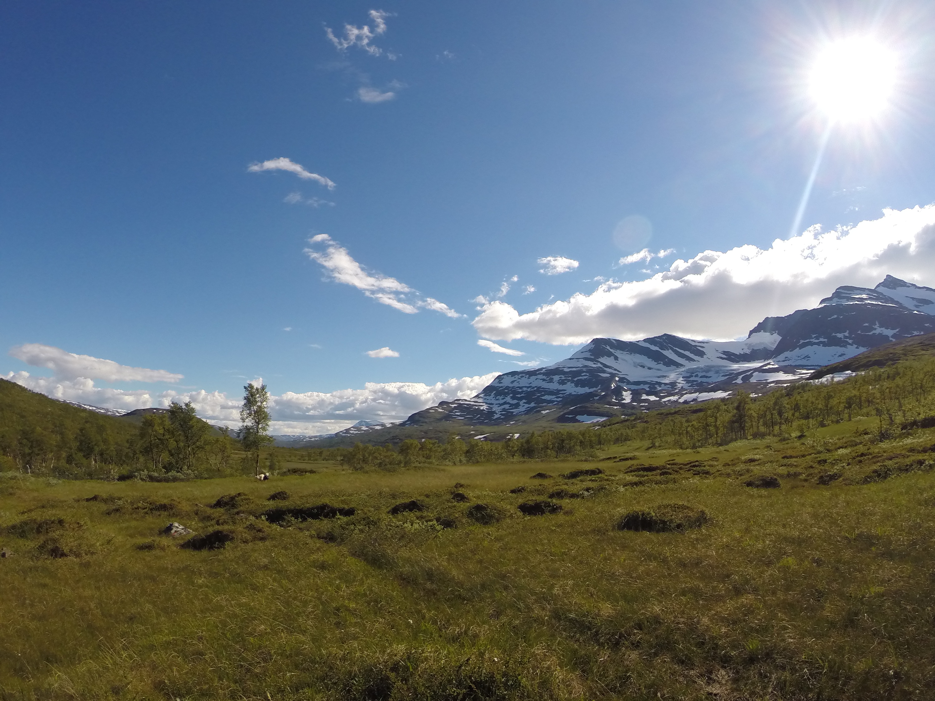 Dagarna gick i samma mönster, från tältplats så högt som möjligt på kalfjället ner i dalar med några hytter vid vägslut för att sen ta sig upp på andra sidan och kämpa på upp till kalfjällets höjder för att där hitta ny tältplats. Enormt vacker och varierad fjällvärld med ena stunden högfjällsterräng för att i nästa stund vandra i frodig djungel nere i dalen.