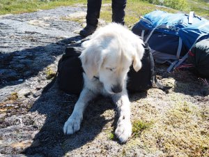 Vi har bara mött tysken första dagen och en äldre norsk surkart som påpekade att Milton måste vara kopplad precis hela tiden. Vi mötte honom på ett lite besvärligt avsnitt där jag av hänsyn till både min och Miltons säkerhet definitivt inte ville ha honom kopplad.