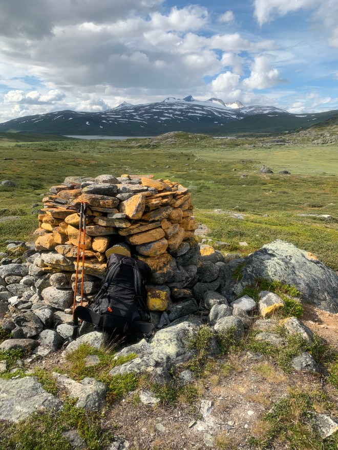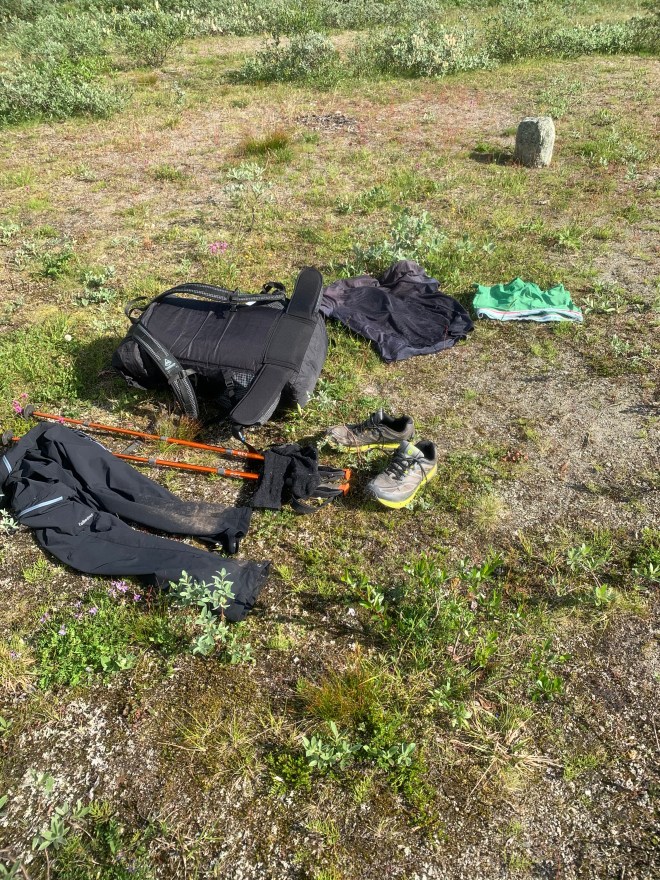 Sammanfattningsvis en mycket trevlig tur rent vandringsmässigt. Väldigt varmt och fint väder. Kanske för fint med tanke på myggen bitvis. Lite ensamt utan sällskap vilket gav onödigt långa dagsetapper. Och framförallt, om jag inte hittar ett par stabilare trailrunners som sitter som en smäck på foten, så åker nog mina tunga Meindl-kängor på igen till nästa tur så jag slipper blöta fötter fulla med blåsor och nötskador.